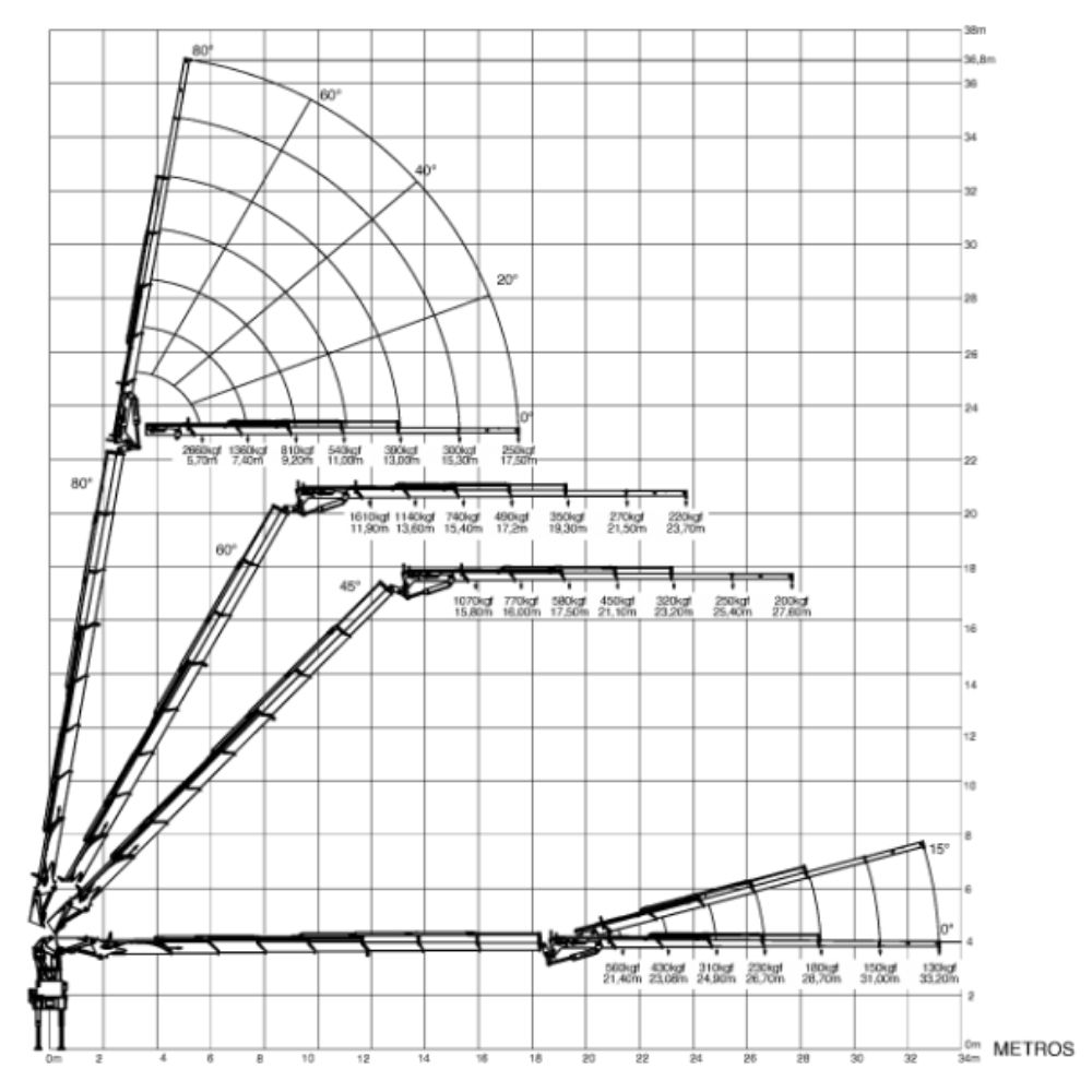 | Alcance máximo horizontal (com Fly Jib – 1ª a 3ª seção) |