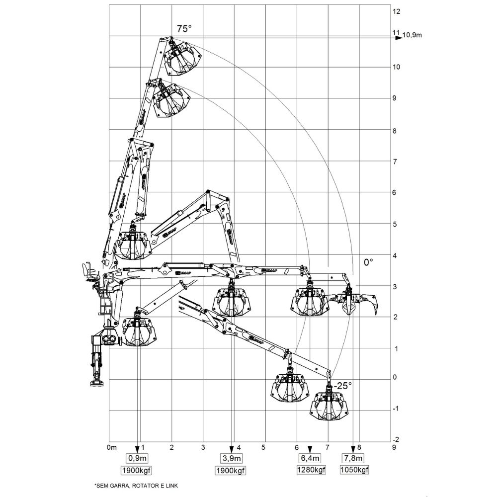 | Capacidade de carga com garra G-IMS-016 | 530 kgf |